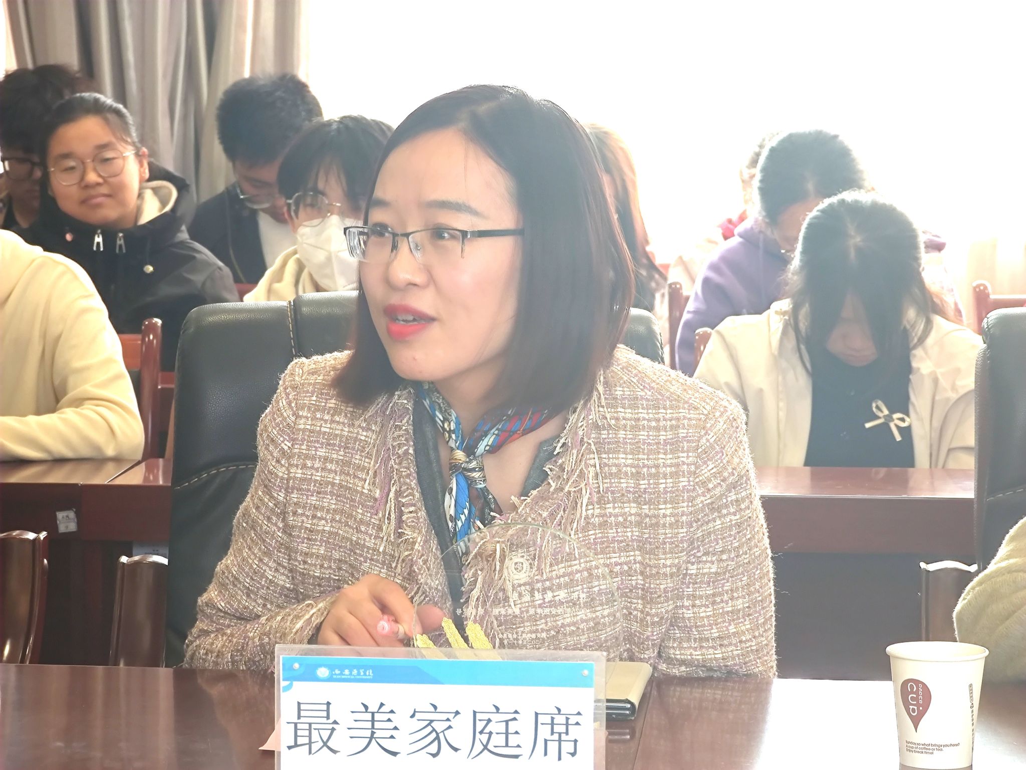 吕宝宣读了《关于表彰西安医学院“最美家庭”的决定》,杨卓虎为“最美家庭”代表颁发奖杯。最美家庭代表薛英利与吴戈、李一杨、李慧瑾四位老师依次发言,大家围绕幸福家庭建设的容错机制、民主参与、互敬互爱、互帮互助等深情讲述家庭故事与家庭经营的幸福密码。他们的分享如潺潺溪流,将文明家庭的温暖、智慧与力量缓缓注入每位听众心间,让大家从一个个真实故事中汲取经营家庭、助力教育的宝贵经验。