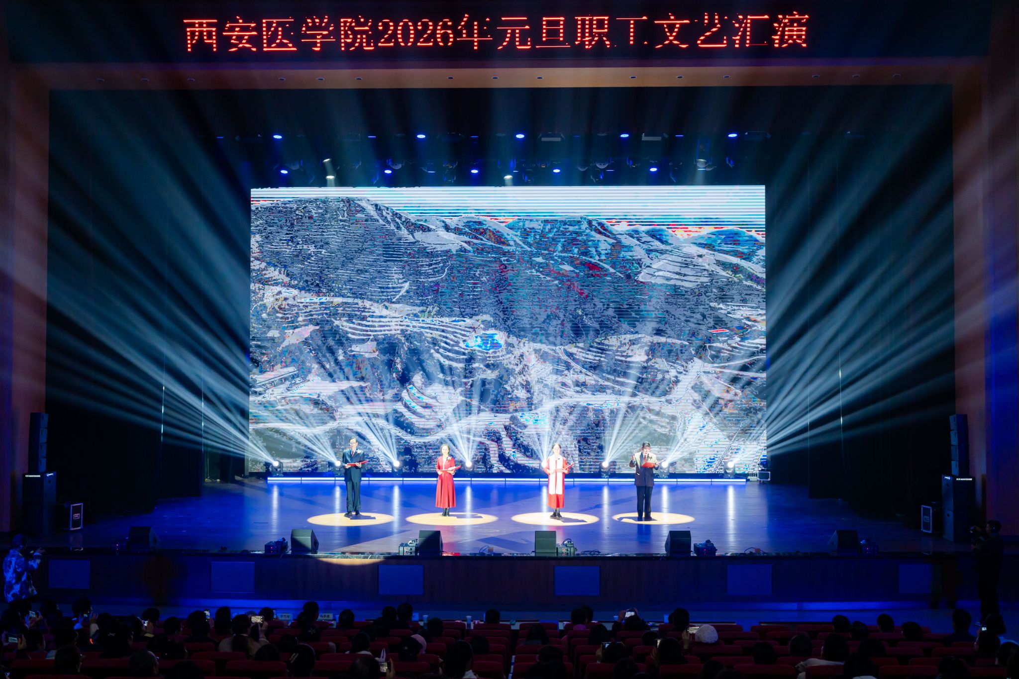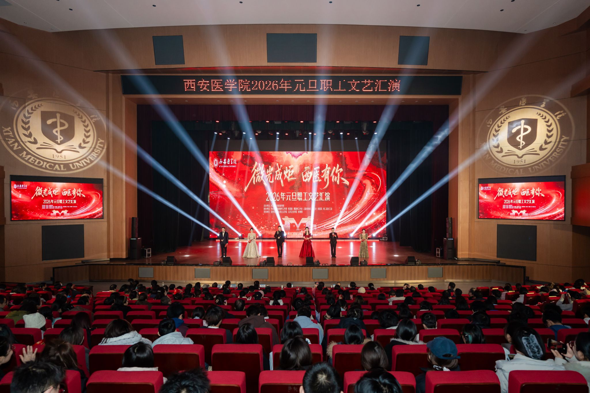 12月30日,未央校区博爱报告厅灯火璀璨,“微光成炬 西医有你”2026年元旦职工文艺汇演盛大举行,为全校职工献上了一场融思想性与艺术性于一体的视听盛宴,师生齐聚一堂,共迎元旦佳节,共绘发展蓝图。全体校领导出席活动。